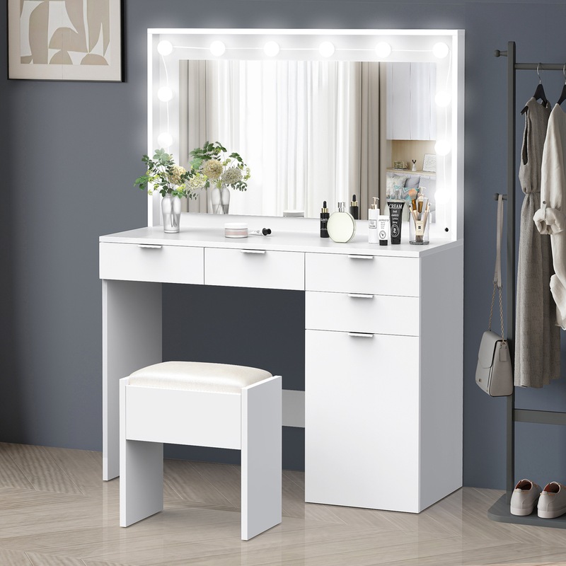 Customizable lighting - Good lighting is important to achieve your perfect glam look. The dressing table features 3 LED light colours - neutral white, warm white, and daylight white and the brightness of each colour can be adjusted in 10 levels, providing adequate light to complete your make-up.