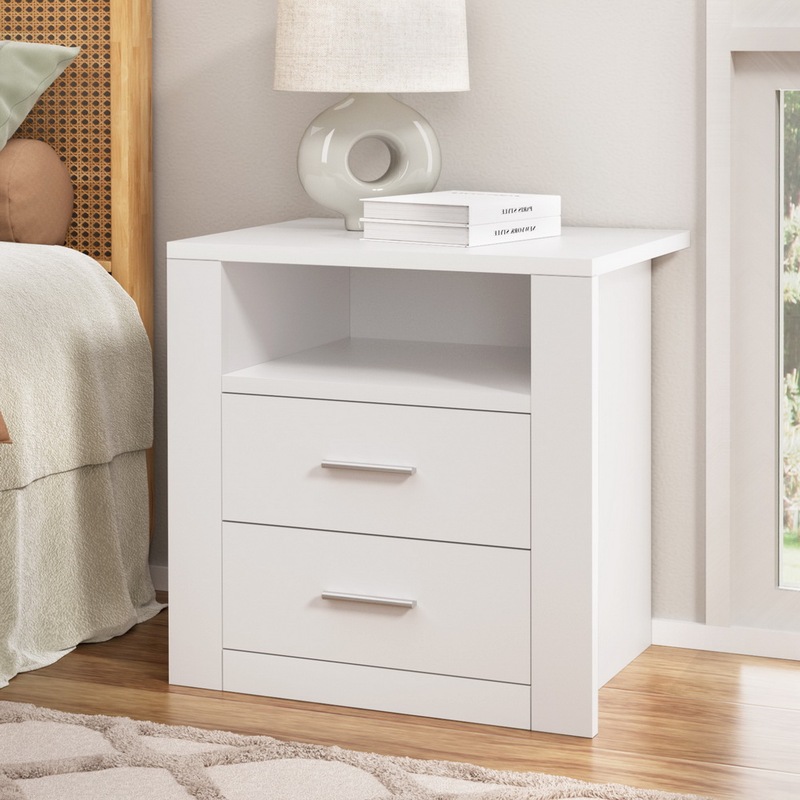People sometimes wonder why they need a bedside table. The answer is simply because a good bedside table is extra storage space for your personal essentials, a spot for your table lamp, and of course, a place for your cuppa. And not least, a perfect companion to your bed. Our modern and stylish Artiss Bedside Table features a sleek melamine finish with elegant aluminium handles to complete the look. Crafted from 15mm thick particle board, the bedside table is solidly constructed and equipped with quality components like high-quality drawer runners and reinforced base. Not least, ample storage space is found with one open shelf and two drawers for all your bedside or personal essentials. Too good to be used only in the bedroom? Well, you can also use the bedside table as a side table with storage to complement your contemporary home decor.