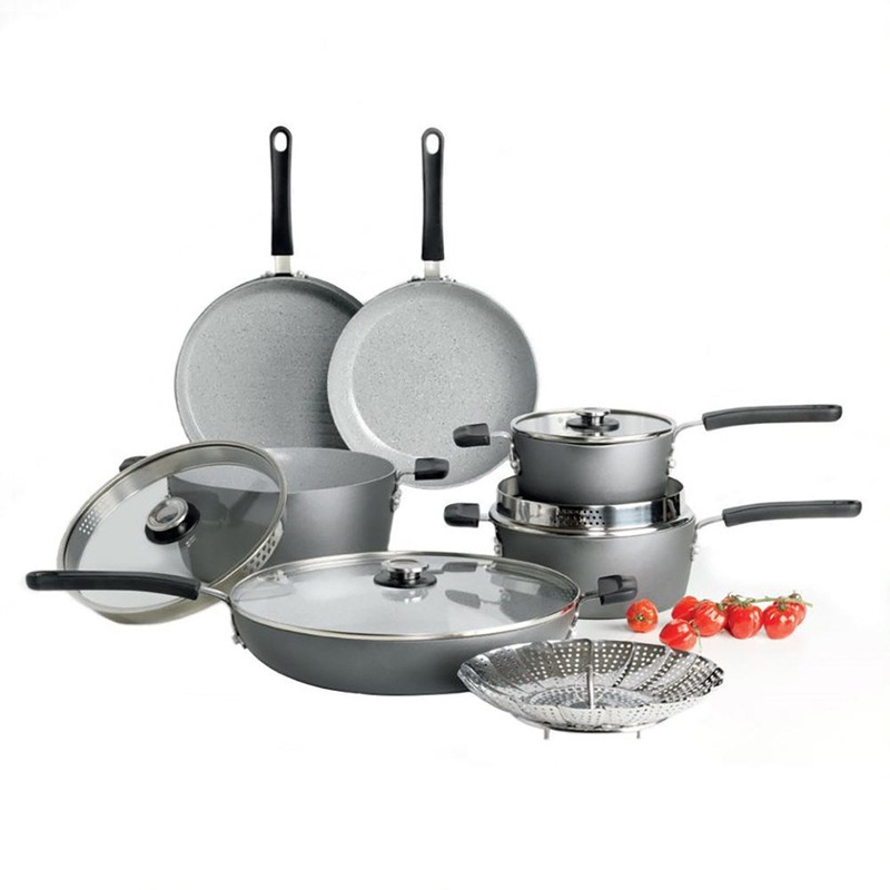 Cook with confidence using the superior quality Cuisine::pro® Swiss+Tec Compact 10-Piece Cookware Set. Designed for versatility and convenience, this amazing cookware set is made from durable ceramic and is suitable for all kinds of cooktops including induction. With hard anodized exterior and triple layer non-stick interior, the Cuisine::pro® Swiss+Tec Cookware Set offers an environmentally friendly and superior cooking experience. The compact set includes 1 x Casserole, 2 x Suacepan 2 x Frypan, 1 x Grill pan, 1 x Flower Steamer, and 3 x Pot protectors. This gorgeous grey cookware set is everything you need in order to get started in the kitchen. Let your creative juices flow in the kitchen while making all your favorite old and new recipes. Made with excellent Swiss cookware technology, the Cuisine::pro® Swiss+Tec Compact 10- Piece Cookware Set is free from PTFE, PFOA, Lead and Cadmium. This eco-friendly and healthy cookware set from Cuisine::pro® comes with tempered glass lids that allow for a safe way to simmer and monitor your cooking. For a memorable cooking experience buy the Cuisine::pro® Swiss+Tec Compact 10- Piece Cookware Set today!