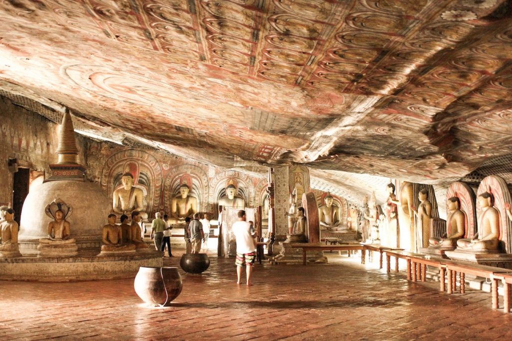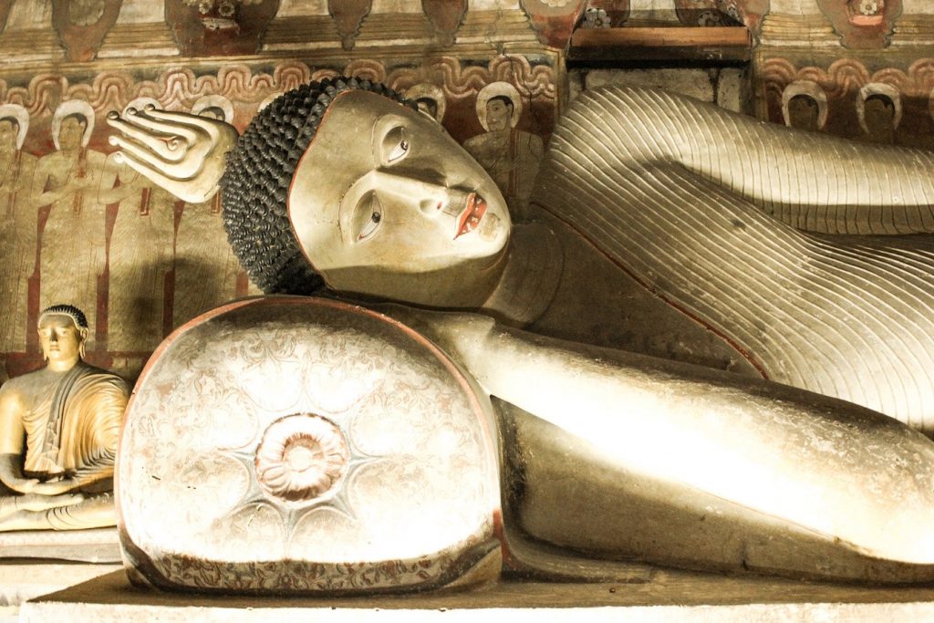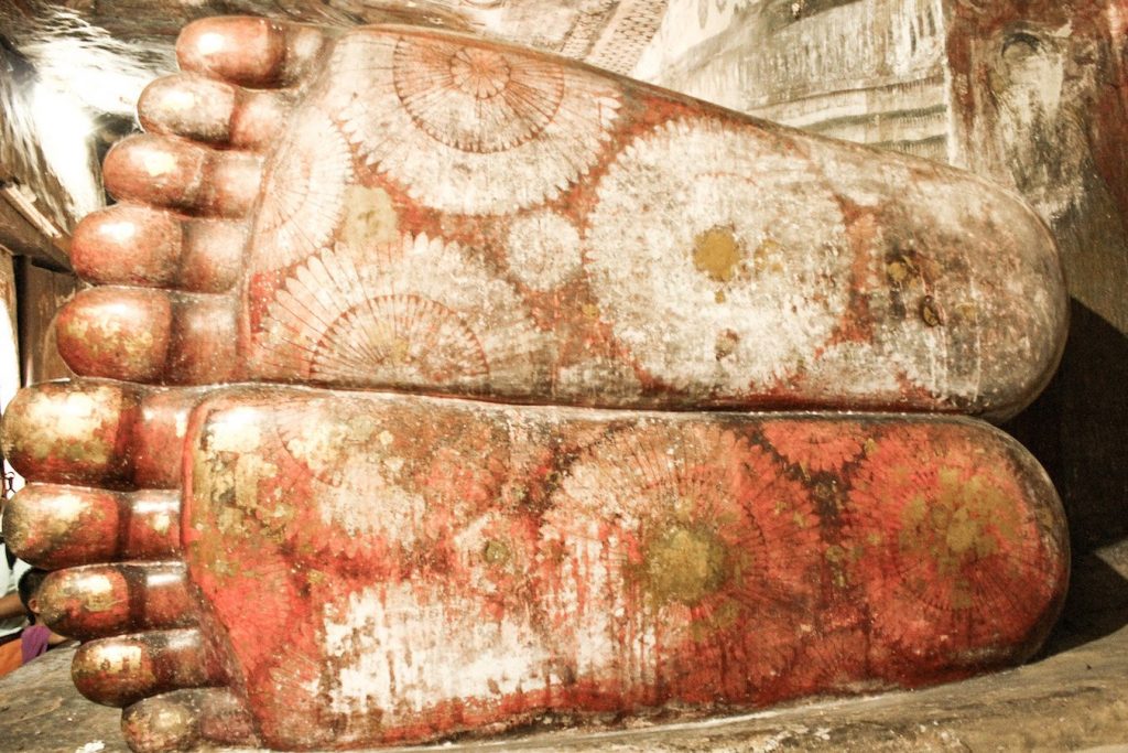 A reclining buddha with intricately painted feet, is surrounded by similarly decorated cave walls. This place is serene and beautiful. It was absolutely one of my favourite temples in Sri Lanka.