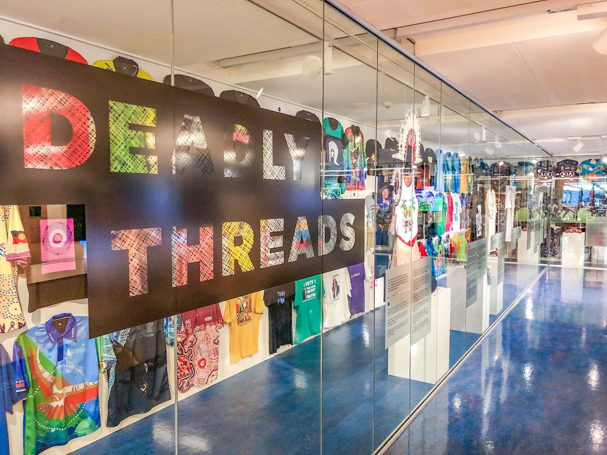 During our visit the featured showcase was called Deadly Threads. This exhibit was focused around a display of some 200 shirts designed by Aboriginal people, which spoke to the power of identity through clothing.