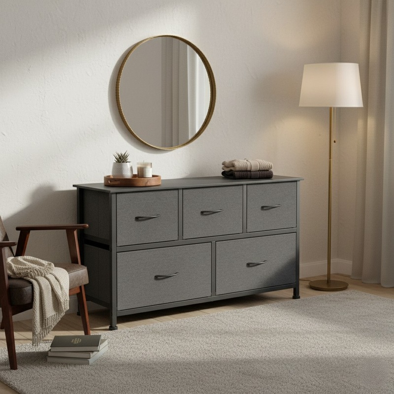 You will be impressed with how durable and sturdy your new chest of drawers are. Use it anywhere indoors. Nice rigid drawers. If someone spills something on it, just wipe it down and keep going.