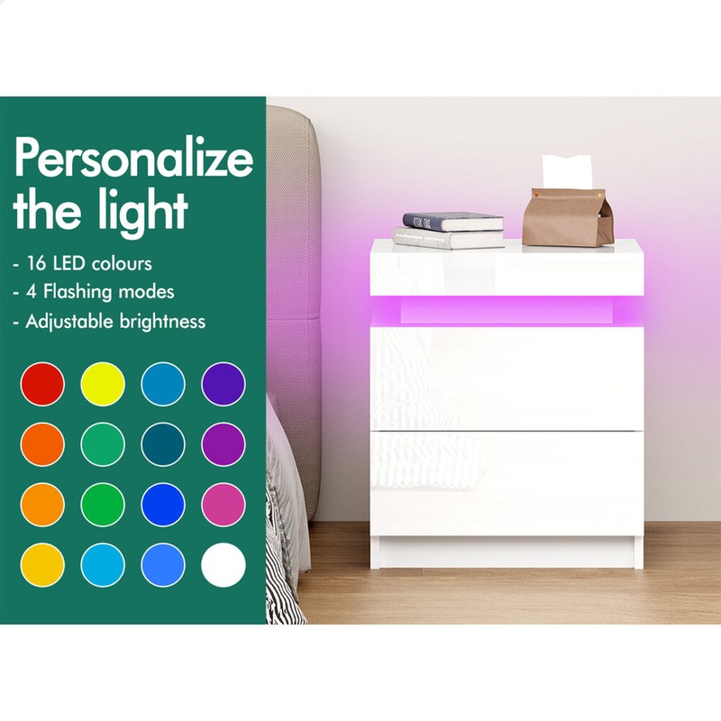 Made of superior E1 grade and 15mm thick particle board, this bedside table is designed to be highly durable. It comes with LED lighting and a remote control for turning light on/off or changing light colour.
