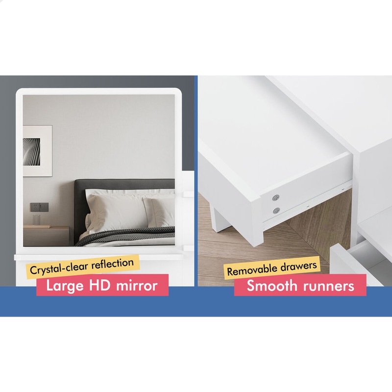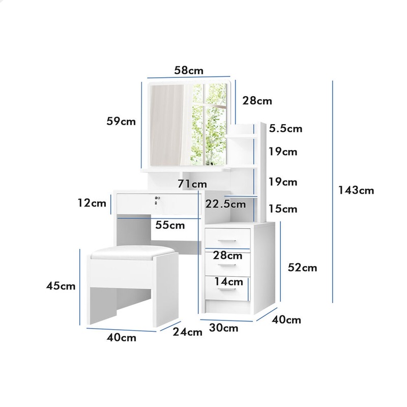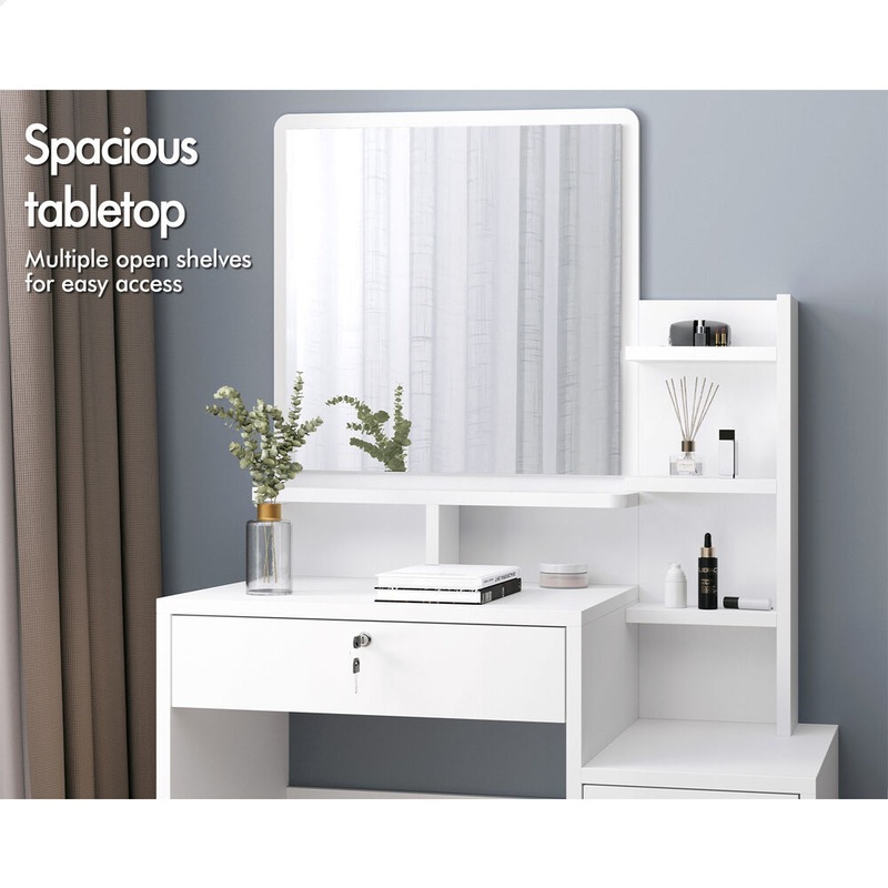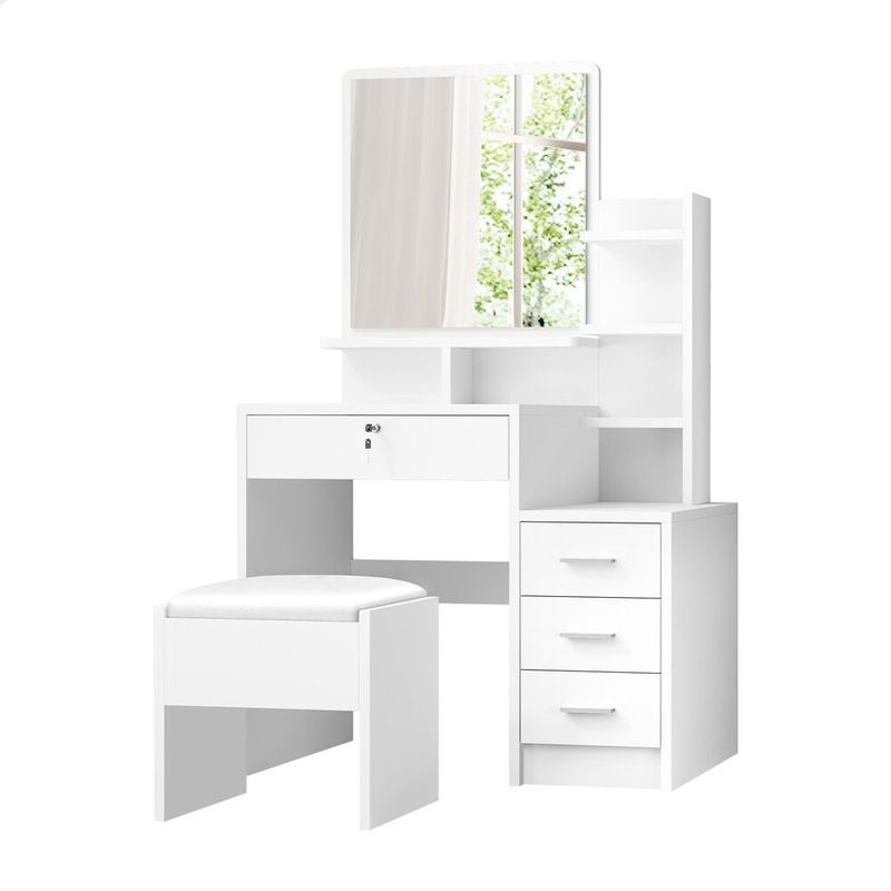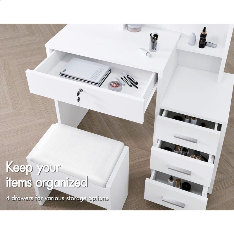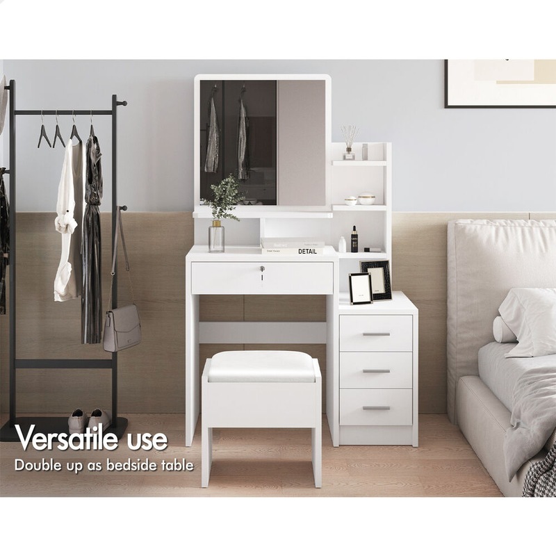 Keep your items organized - It features mutiple shelves and 4 drawers for ample storage space. For items you want to access easily, like make-up products, lotions, or perfumes, you can simply put them on desktop of table. For other items, like jewellery, you can store them away in drawers so they won't gather dust. Featuring a side cabinet, this dressing table can serve as nightstand next to your bed for use.