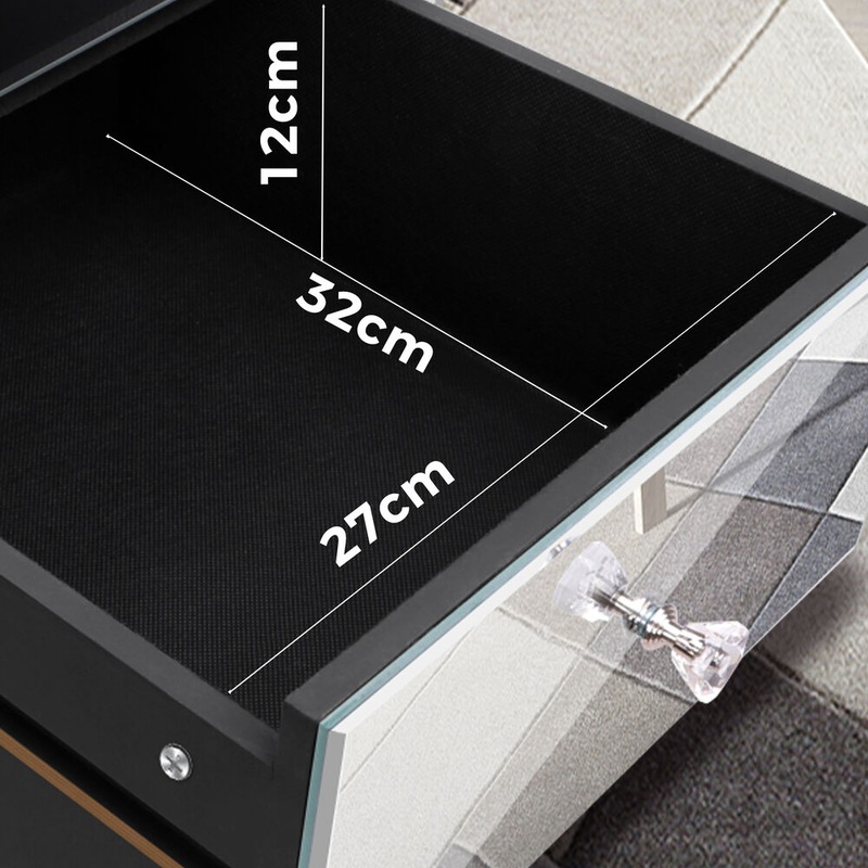 Materials: reinforced glass surface, 1.5cm chipboard drawers, crystal knob