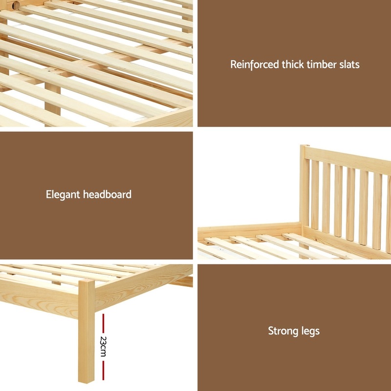 Natural solid pine wood frame and thick plywood slats