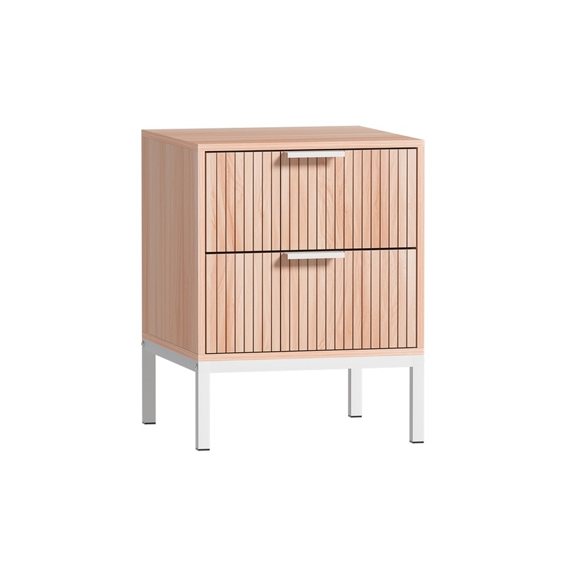 The Artiss Lura Bedside Table combines traditional style furniture with modern design to bring you a cosy, stylish and functional bedroom piece. Made from premium particleboard and solid metal legs, the table is built to last. The fluted front with sleek minimalist handles gives the unit a contemporary look. With plenty of space inside and a tabletop weight capacity of 30kg, the bedside table will be able to hold all your bedroom essentials. Smooth, rust-resistant metal runners make the drawers easy to open. Anti-slip feet pads keep the table from moving and prevent scratches on your floors. Of course, you don't need to confine your piece to the bedside ??? the Lura will suit any room of the home. For a stylish, functional and trending piece, get the Lura Bedside Table by Artiss today.