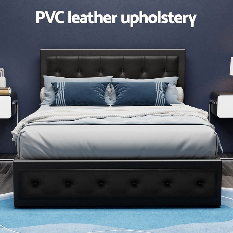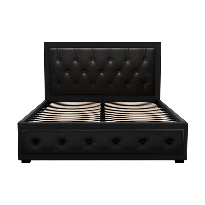 From the outside, our contemporary Artiss Tiyo Gas Lift Bed Frame looks absolutely plush. The premium PVC leather tufted headboard and sides all exudes fine craftsmanship. But there is more to this luxurious bed frame than meets the eye. Lift up the frame and you will find acres of storage space under the wooden arched slat base. The gas lift system and hand strap enable you to effortlessly lift the bed to store all your seasonal beddings and linen such as extra quilts, pillows and comforters and more. The wooden arched slat base is also designed to flex appropriately so that it can better distribute the weight exerted on it. Overall, the bed frame is well-built with reinforced steel bars within its sturdy steel frame. Heavy-duty metal connectors keep the frame sturdy with additional central support from an adjustable centre support beam. Enjoy your wonderful sleep in more ways than one with our innovative Tiyo Gas Lift Bed Frame.