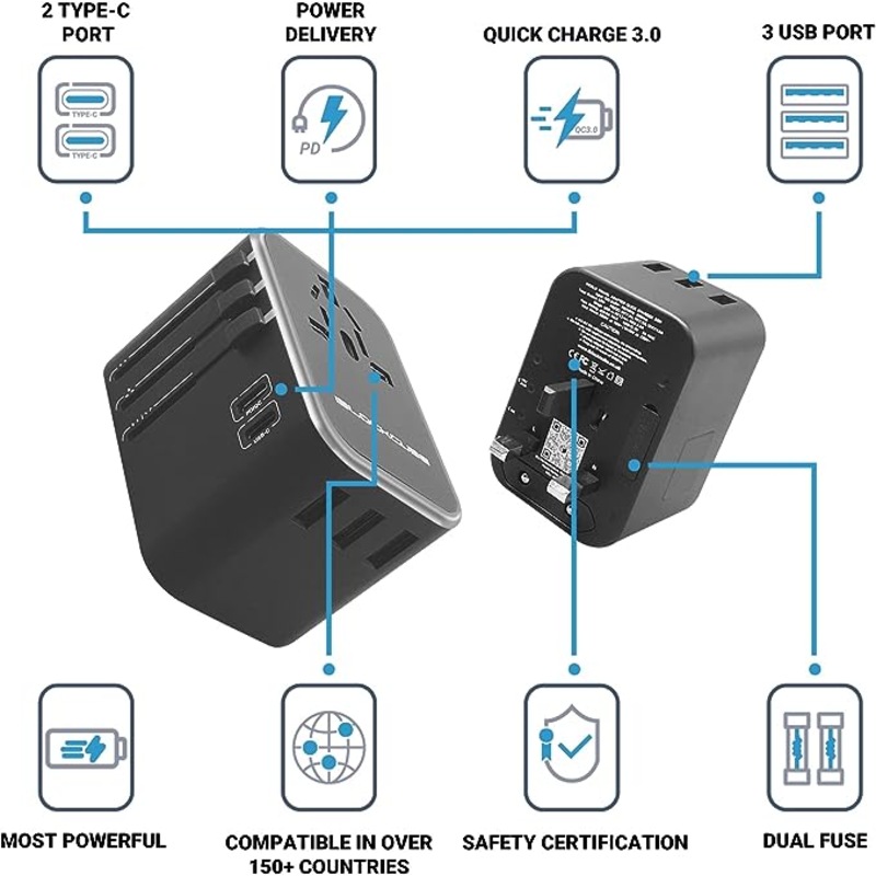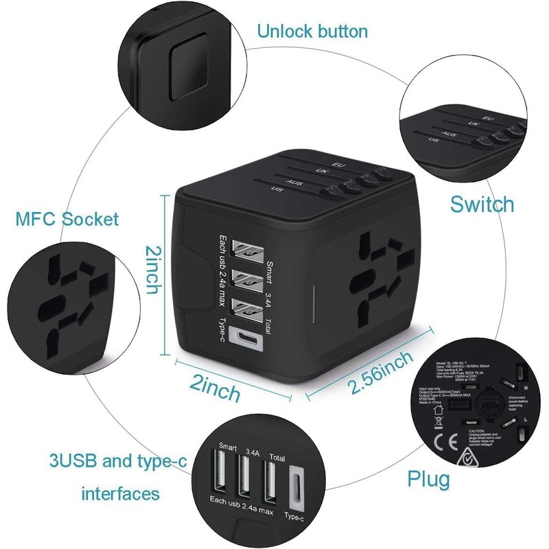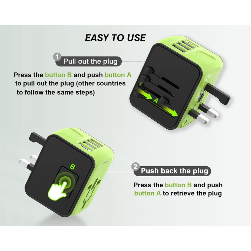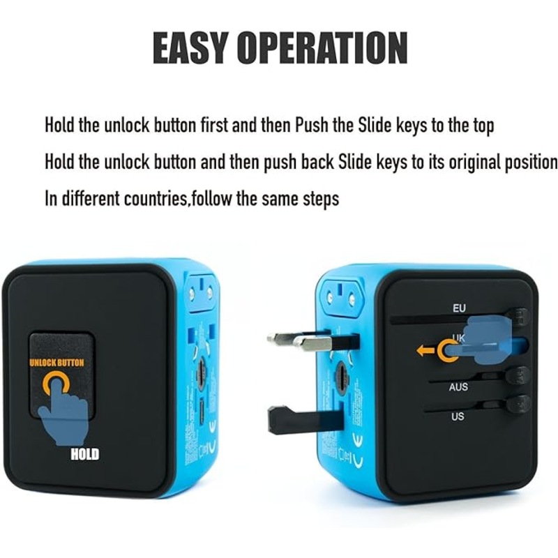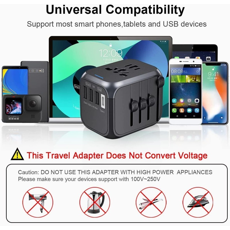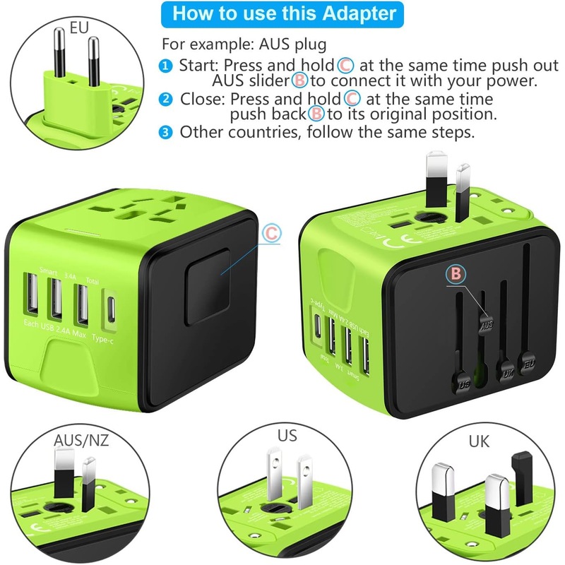 - Worldwide Compatibility: This travel adapter with US/EU/AU/UK plugs covers over 200 countries such as UK, European, Australia, USA, Italy, Japan, China, France, Africa, etc;