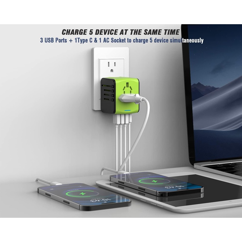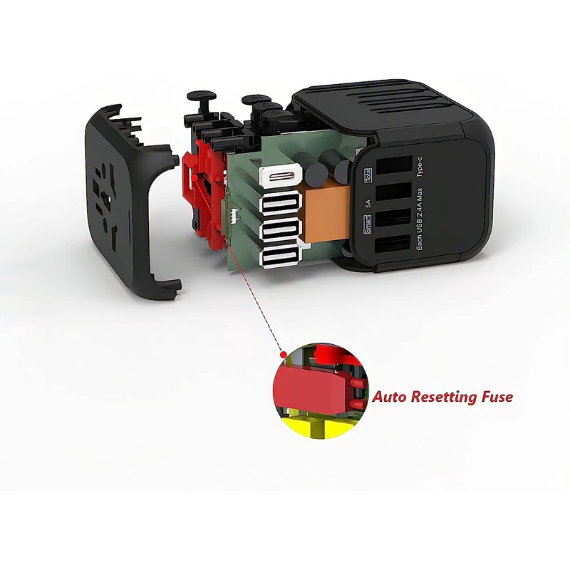 [Intelligent Shunting] Our travel adapter can automatically identify various devices. It can distribute current intelligently, and protect your devices.