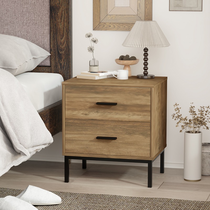 ? Bronx bedside table with natural wood grain finish and industrial-style metal legs