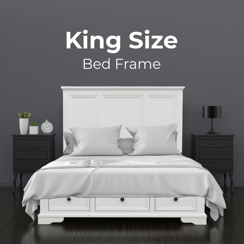 A few furniture pieces make the bedroom look grand. This king-bed, tallboy suite is composed of such furniture pieces. The suite is crafted in the coastal style, and it decorates your bedroom wonderfully. Turn your bedroom into a tranquil retreat with this suite and also keep it well-organized with the help of extra storage space. The suite consists of 1 king bed having 3 foot-end drawers, 1 tallboy with 6 drawers (2 small drawers over 4 large drawers) and 2 bedside tables with 3 drawers each. All the drawers are adorned with full metal extension runners and shiny black metal knobs.The top drawers have black felt for storing delicate items. A beautiful headboard gives a classy look to the bed, and solid pine slats give it great robustness. The whole furniture collection is made of sustainably harvested solid acacia timber. The wood is known for its good looks, strength, shock-resistance, long durability, and ease of maintenance. The suite in a white painted finish goes well with a variety of interior decor styles, and a one-year warranty is included with the suite. The best part is that only the bed needs to be assembled in the entire suite.