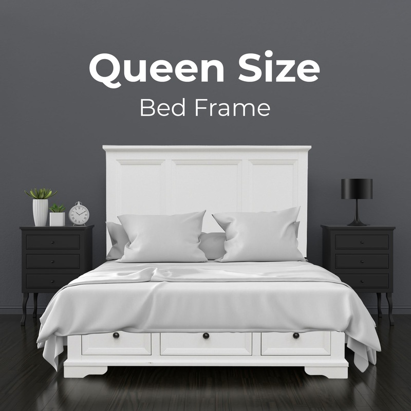A few furniture pieces make the bedroom look grand. This queen bed and tallboy suite is composed of such furniture pieces. The suite is crafted in the coastal style, and it decorates your bedroom wonderfully. Turn your bedroom into a tranquil retreat with this suite and also keep it well-organized with the help of extra storage space. The suite consists of 1 king bed having 3 foot-end drawers, 1 tallboy with 6 drawers (2 small drawers over 4 large drawers) and 2 bedside tables with 3 drawers each. All the drawers are adorned with full metal extension runners and shiny black metal knobs.The top drawers have black felt for storing delicate items. A beautiful headboard gives a classy look to the bed, and solid pine slats give it great robustness. The whole furniture collection is made of sustainably harvested solid acacia timber. The wood is known for its good looks, strength, shock-resistance, long durability, and ease of maintenance. The suite in a white painted finish goes well with a variety of interior decor styles, and a one-year warranty is included with the suite. The best part is that only the bed needs to be assembled in the entire suite.