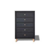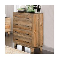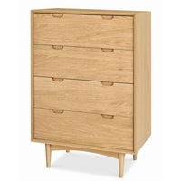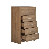 A tallboy not only solves the storage space problem in the bedroom but also makes it look complete. Bring home this sleek 5-drawer bedside and take your bedroom?s beauty to a new level. It features Herringbone design, showcasing beautiful geometric pattern highlighting the natural grain of the wood and this makes each furniture piece look unique. Made of sustainably harvested solid and veneer messmate, the tallboy features a striking parquet top which highlights the wood?s beautiful colours and distinctive grain. The tallboy top has a shadow gap which gives the appearance of a floating top that looks amazing. The drawer boxes of the tallboy are solid timber with finger joint corners, a ply base, and full extension metal runners. The beautiful furniture piece is finished with a clear protective lacquer which again enhances the timbers colours and grain. The tallboy in natural colour with a clear lacquer finish looks stunning in practically any interior decor scheme.Designed in the Scandinavian-style featuring innovative wood pattern and natural colour accents, the tallboy is light, robust, and resilient. Fully assembled tallboy comes with a one-year warranty.