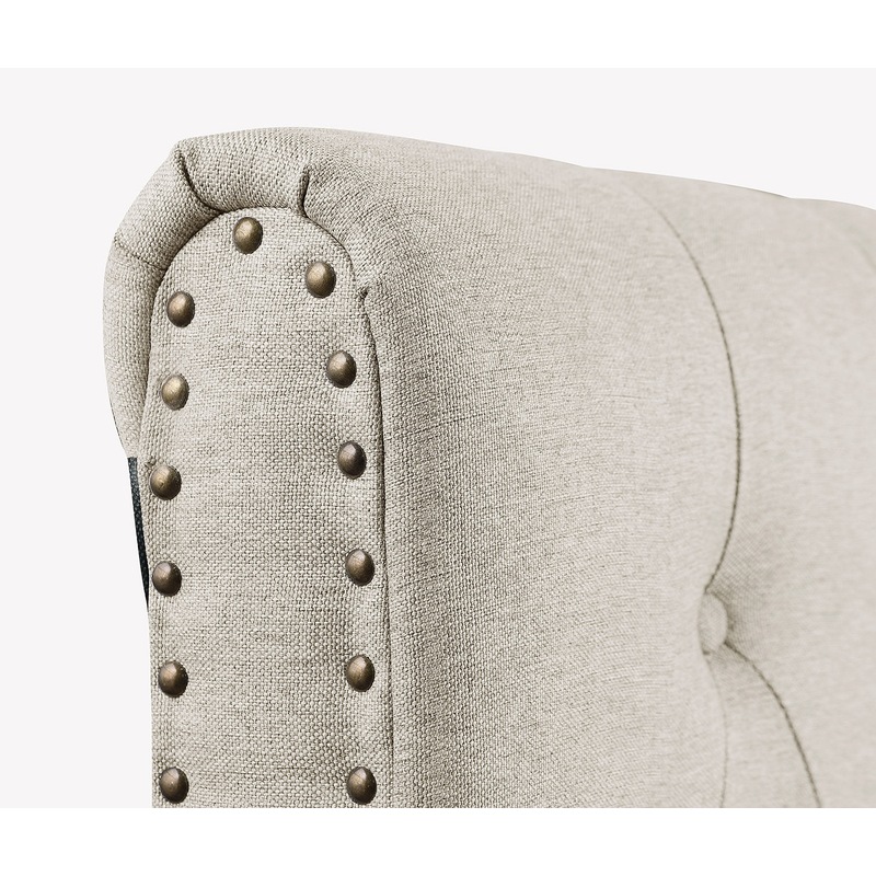 • Upholstered in fabric with detailed stitching, studding & tufted design to create a luxurious appearance