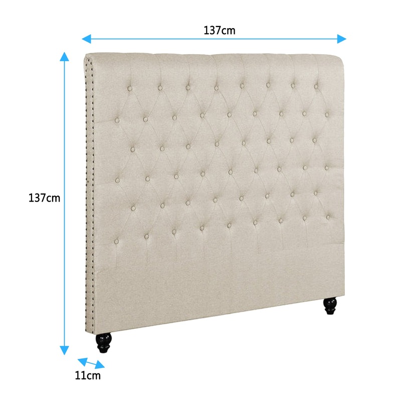 Foret Bed Head Double Size Upholstered Headboard Bedhead Frame Fabric Cream