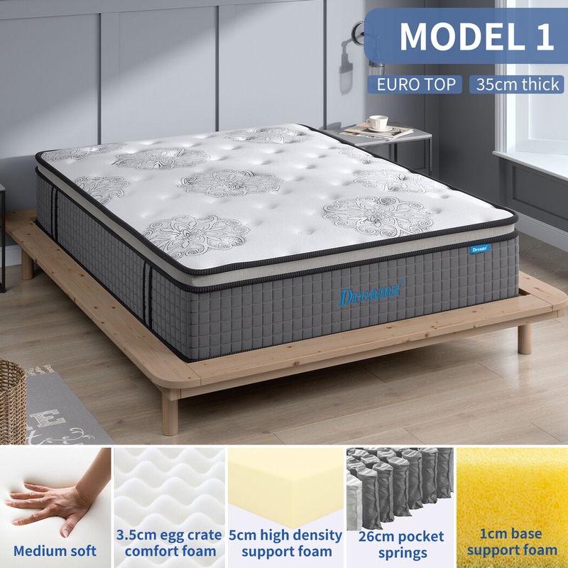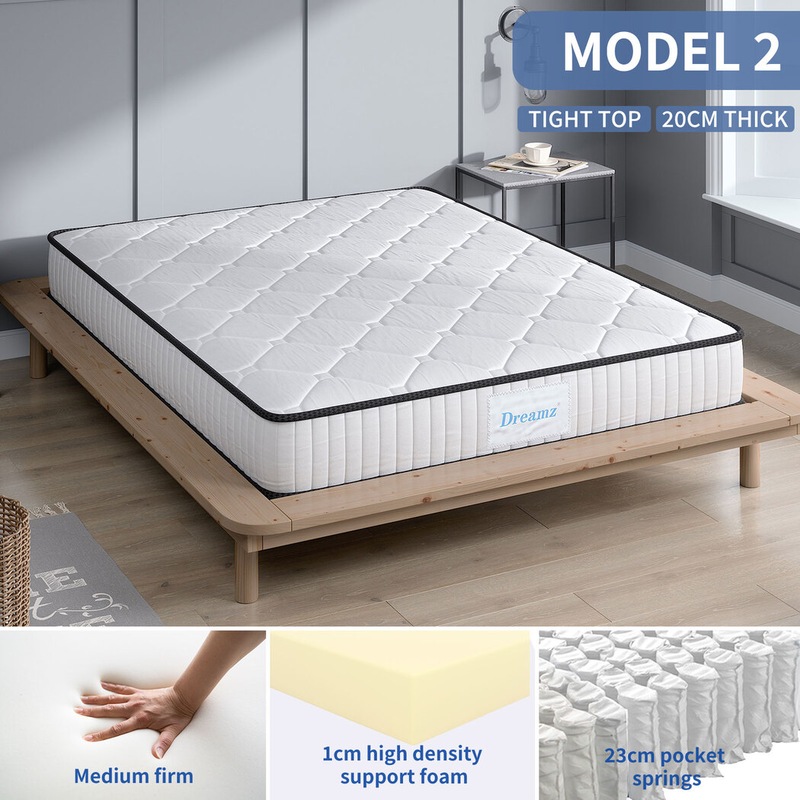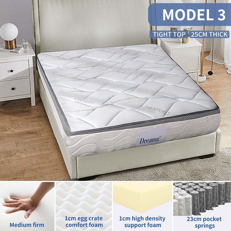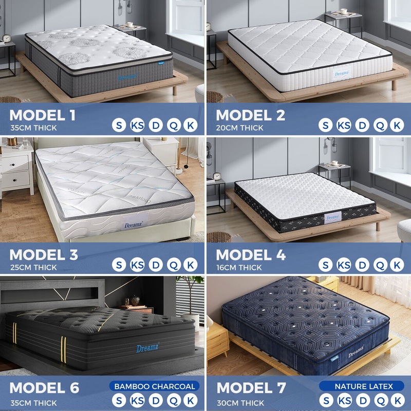 Pick from single, king single, double, queen and king mattresses. Choose the perfect thickness for your needs. Select between pocket or Bonnell springs. Decided on cool-gel foam, egg crate foam or the standard high-density foam.