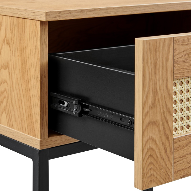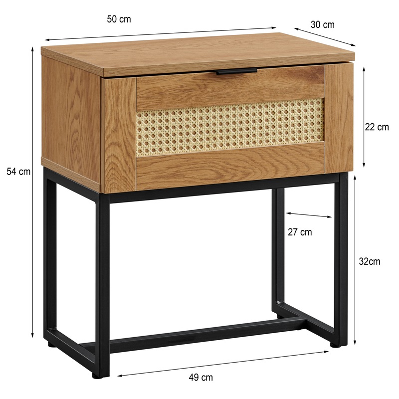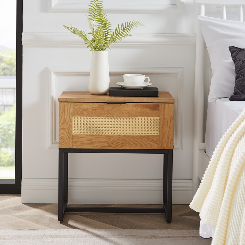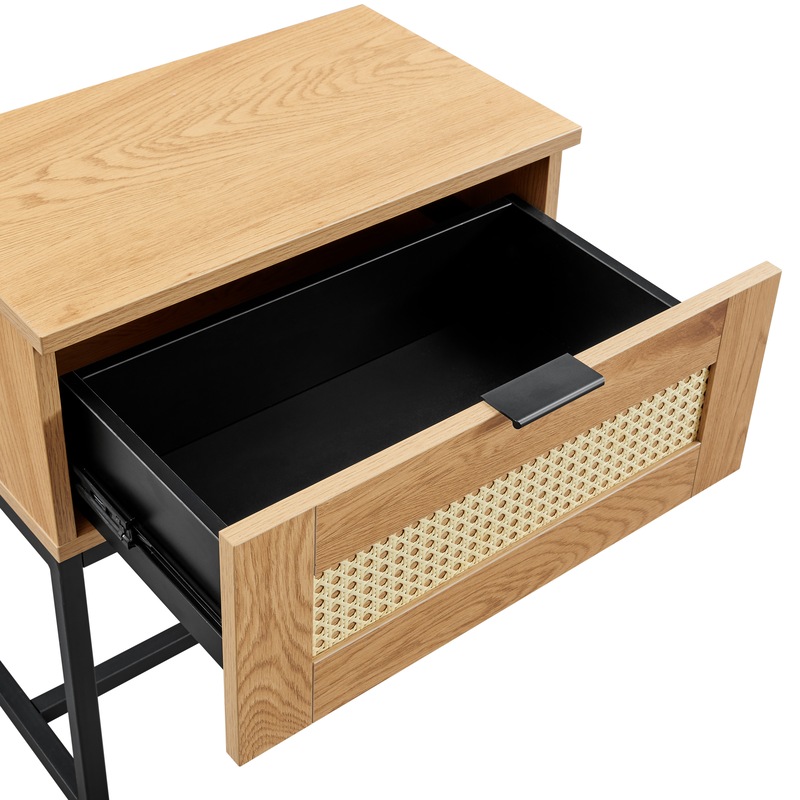 Keep your bedroom organised with the spacious DukeLiving Bahamas Rattan Bedside Table (Light Oak). Its large pull-out drawer contains ample room to store all your knick-knacks, books or bedtime beauty essentials while its generously sized table top has enough space for a lamp and decorative pieces. Beautifully designed, this bedside table adds instant charm to your space.