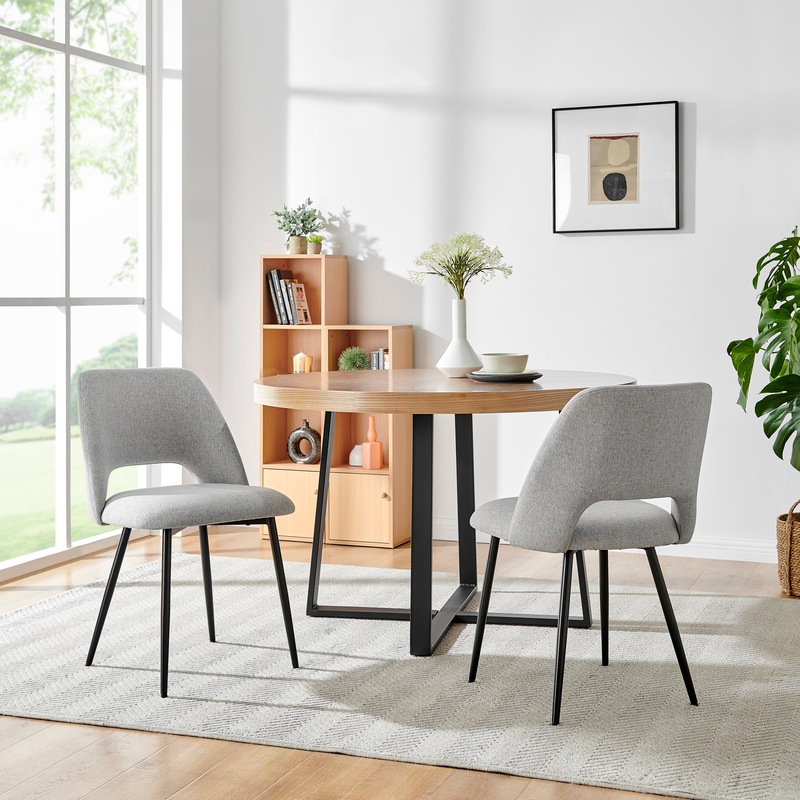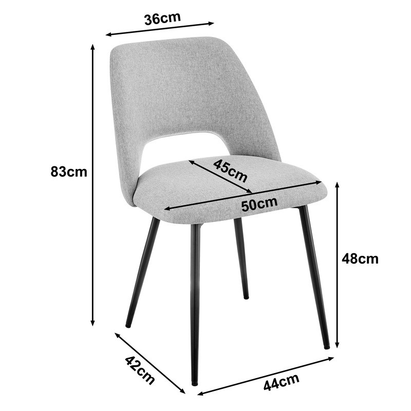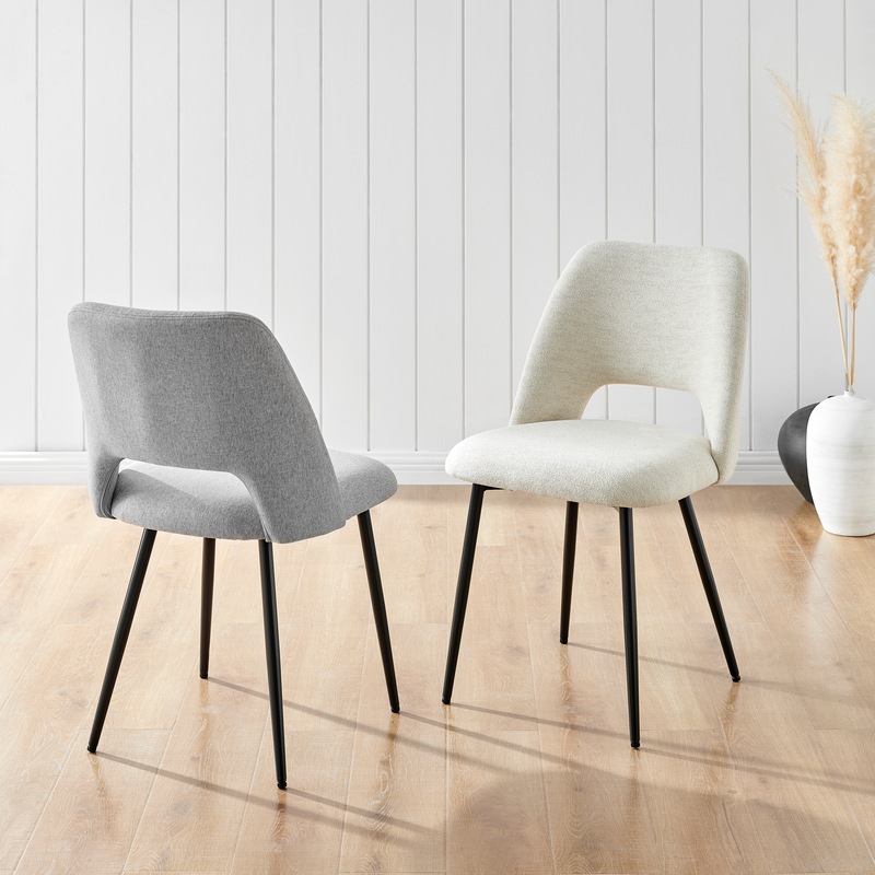Whether you're enjoying a hearty meal, getting competitive with a board game or just having a good time with friends, the DukeLiving Lauren Fabric Dining Chairs Dark Grey (Set of 2) has your back! Designed with soft fabric upholstery and strong metal legs, these chairs are not only comfortable but strong and sturdy too. Blending seamlessly with minimalist or contemporary spaces, they are perfect for dining rooms or anywhere else you require some casual seating. Available in Dark Grey and Beige.