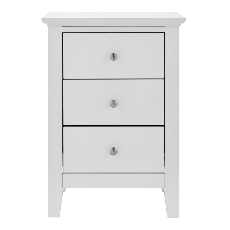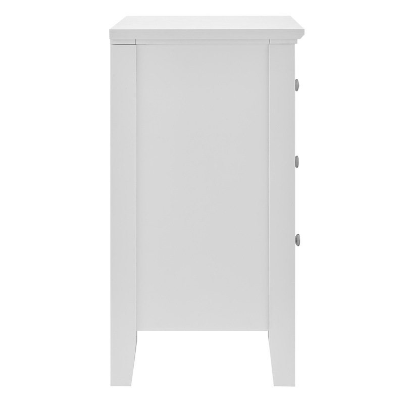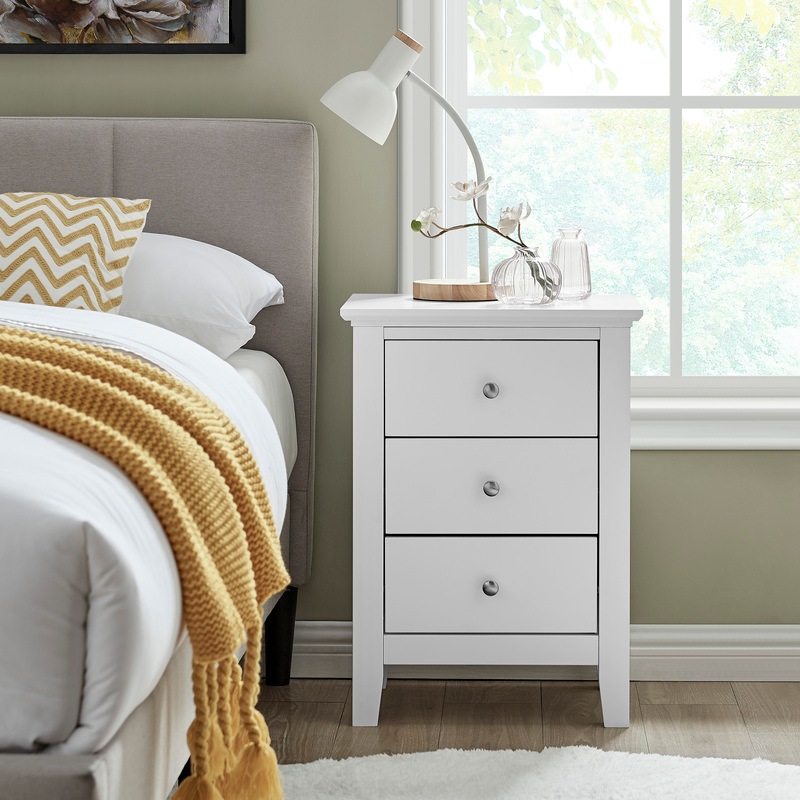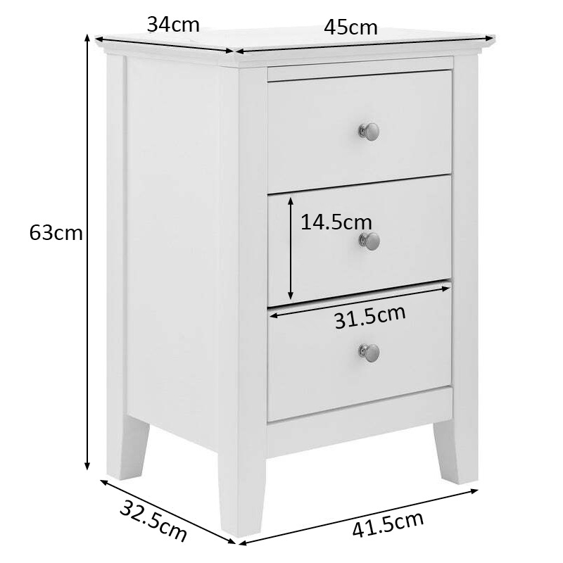 Triple your bedside storage space with a DukeLiving Torquay 3 Drawer Bedside Table (Satin White). With a timeless yet modern design, this bedside table fits in effortlessly with any space or decor. Perfect for storing a lamp, valuables, knick-knacks, books, medicine, jewellery and more, this bedside table has three spacious drawers, freeing up valuable space and keeping your space tidy and organised. Made from wood, this bedside table is strong, sturdy and durable and makes a stunning addition to any bedroom, study, living room, lounge, reception or office. Available in Black, and Satin White.