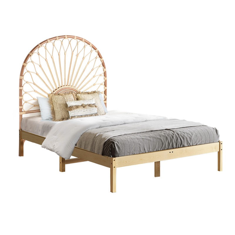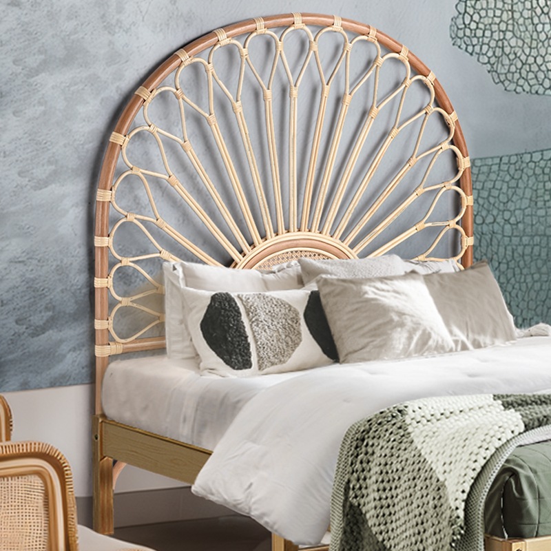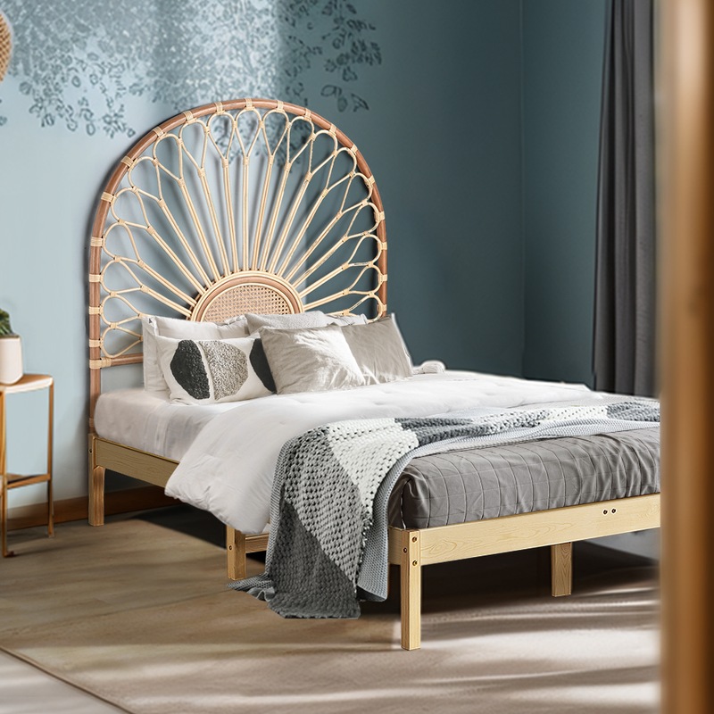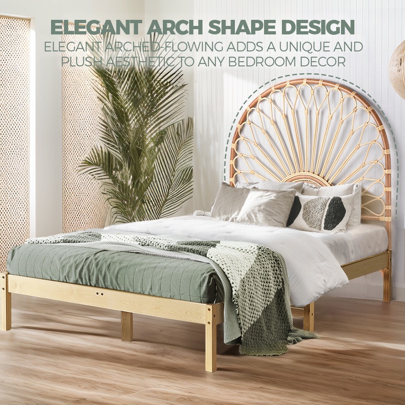 Furb Queen Size Rattan Bed Headboard Bohemian Style Bed Head Frame Base Bedroom Furniture Natural