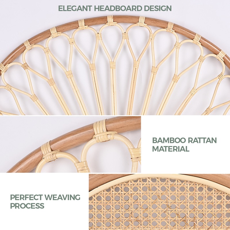 • This bedhead is made from natural rattan material and straightened by hand. As a result, slight deviations may occur, which are normal and not a quality issue. Please keep the bedhead in a dry and well-ventilated environment to avoid mold. Regularly use a dry cloth or a soft brush to clean the surface dust and maintain the natural beauty of the rattan.