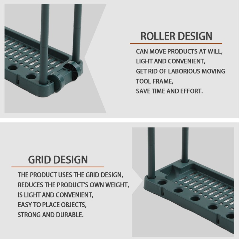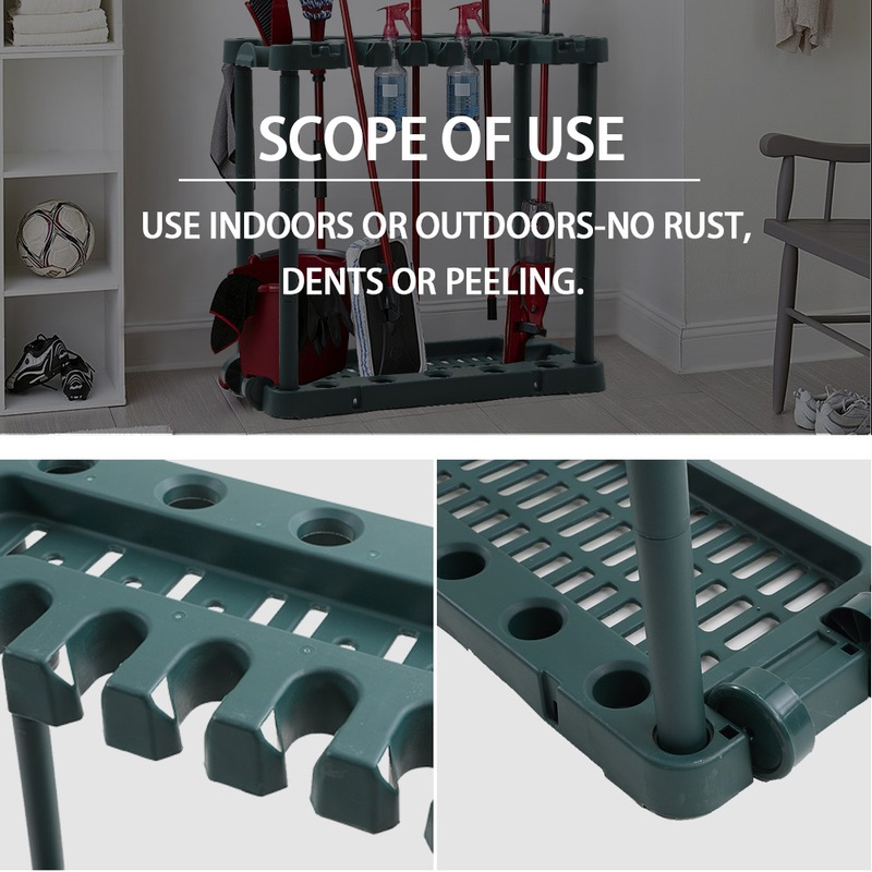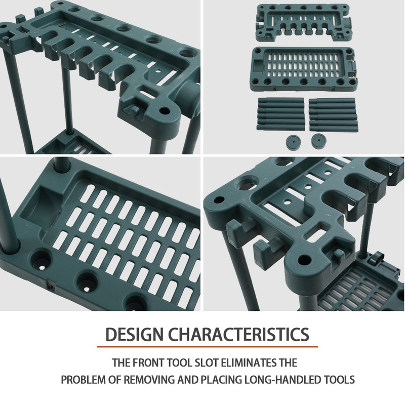 The Garden Tool Organiser Handle Holder Green features 40 slots - ample space for all your gardening tools. Made from plastic, it is strong, sturdy & druable - perfect for use indoors or out. Organise your tools today!
