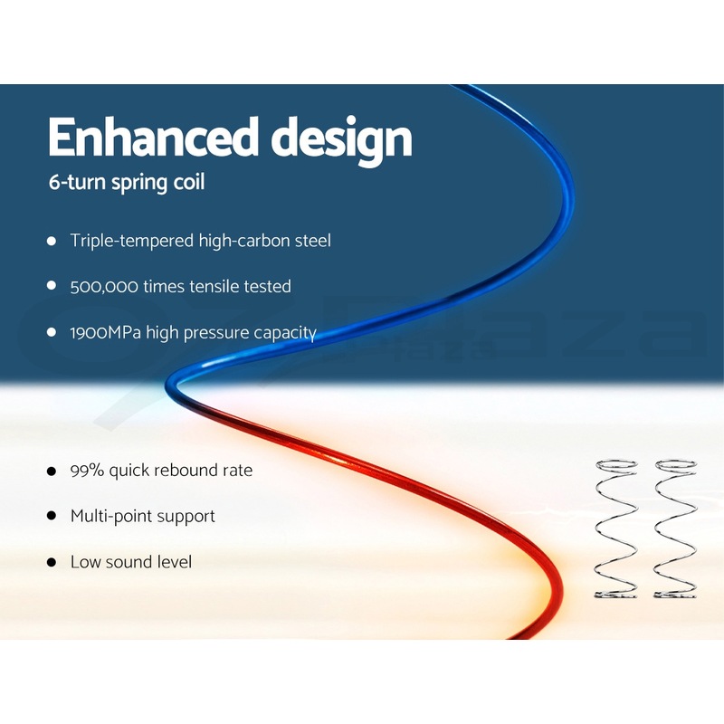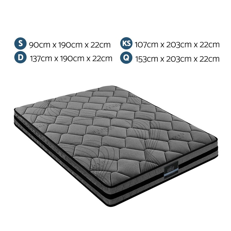 Enjoy a sleep like never before with our Giselle Bedding Wendell Series Pocket Spring Mattress. This 22cm thick mattress boasts quality craftsmanship and innovative sleep tech for ultimate relaxation. Enjoy soft Belgium knitted fabric, the 5-zone EvenZon pocket spring system for undisturbed sleep and medium firmness loved by Aussies. Its core features independent 6-coil pocket springs and high-density egg-shaped foam for extra support, topped with a quilted layer. Plus, it's allergen and dust mite-resistant. Better sleep is not just a dream, it is a reality with our luxurious pocket spring mattress.
