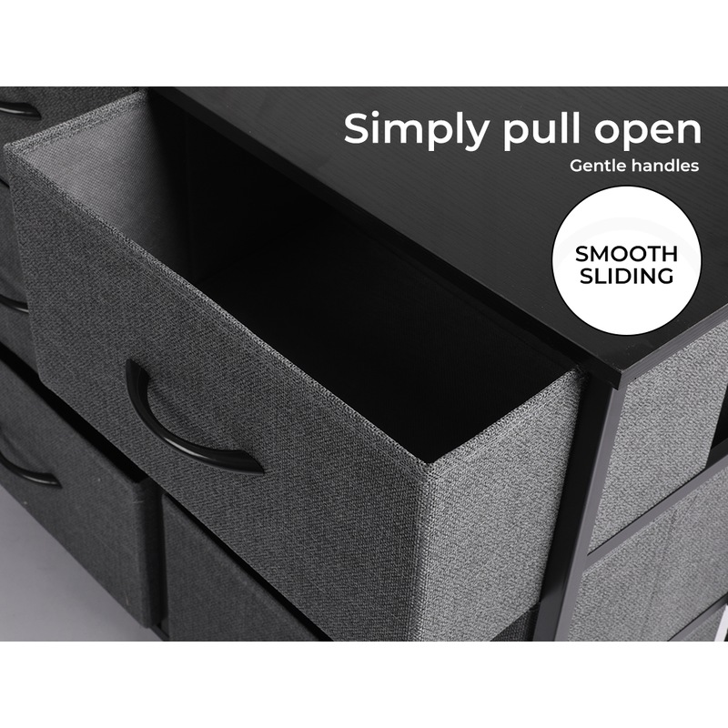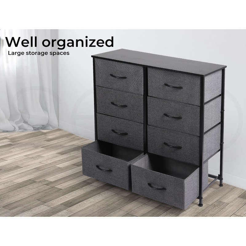 The drawers were exactly what I was looking for as an extra dresser to have in my bedroom and put a small tv on top of. The dresser came with simple instructions on how to put it together and is easily assembled in less than an hour. It is sturdy and the drawers slide quite easily. The whole thing is fairly light and can be moved easily. I'm happy with my decision to go with the 8 drawer dresser after much measuring and deliberating.