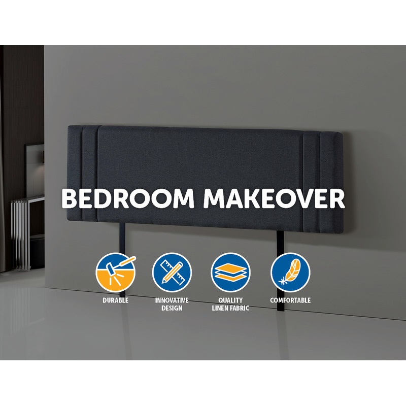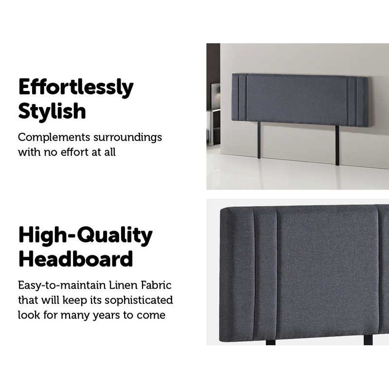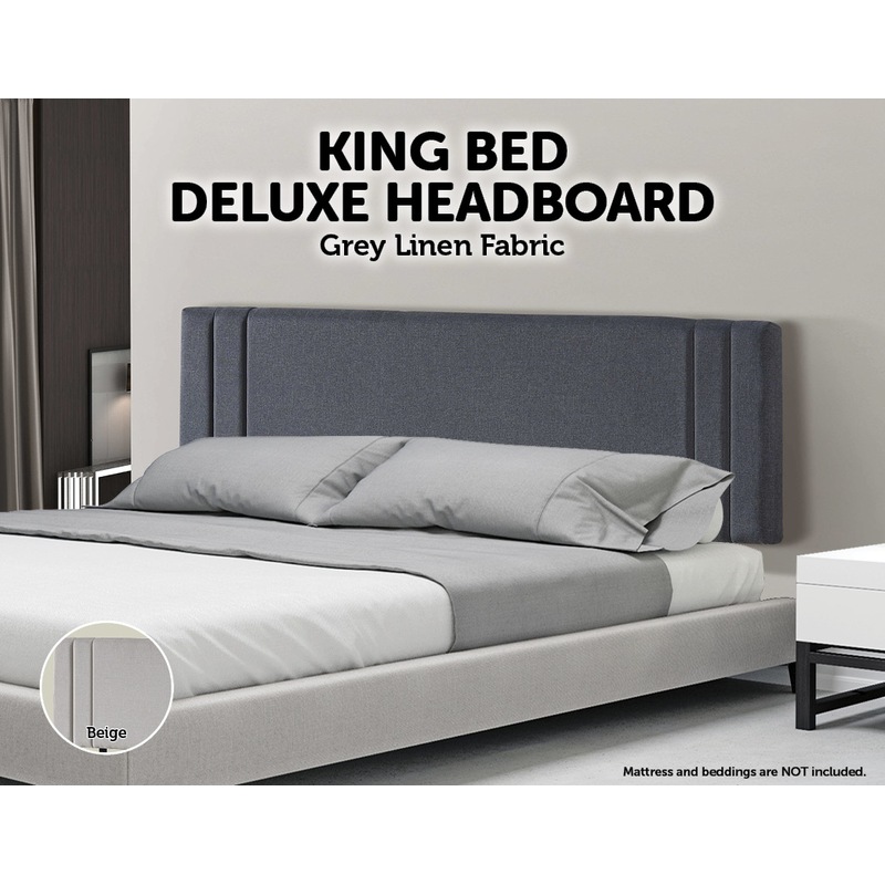 This headboard for standard King-sized bed frames is created with quality materials, including easy-to-maintain Linen Fabric that will maintain its sophisticated look for many years to come. This particular model comes with elegant stitching accents that provide just the right level of understated pop. A neutral grey will blend seamlessly with a wide variety of bed frames and other bedroom furniture.