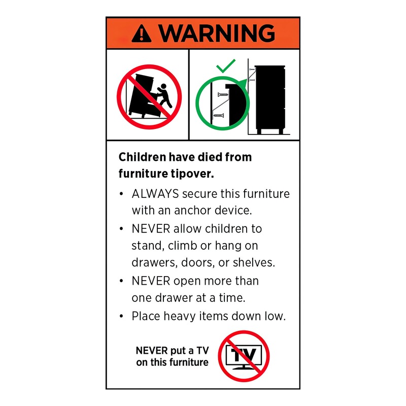 (b) never allow children to stand, climb or hang on drawers, doors, or shelves;