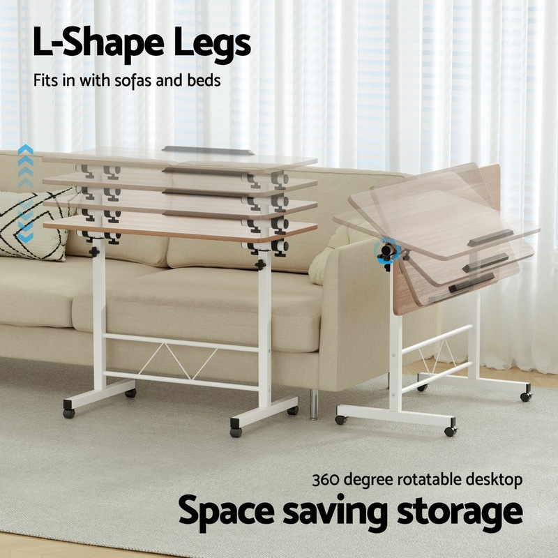 Sometimes you wish you have a ready desk at your beck and call. But moving your one desk is impractical. And that is where our Mobile Laptop Desk can help you explicitly. Designed to be strong and lightweight, our mobile laptop desk has ample desk area to work efficiently without feeling cluttered. The height is easily adjustable to your preference and the U-shape design fits in well with most furniture such as sofas and beds to get a comfortable sitting position. Better still, the desk top can now be tilted up to 360° to suit your preferred use angle and also features an edge stopper to prevent things from falling off. The castor wheels are omni-directional and can be readily locked down in place. Or, if you like, remove the detachable wheels for a more permanent fixture. Not least, with its thick 17mm MDF board desk top and sturdy powder-coated U-shape steel frame, our mobile laptop desk is absolutely versatile to function as any type of table top.