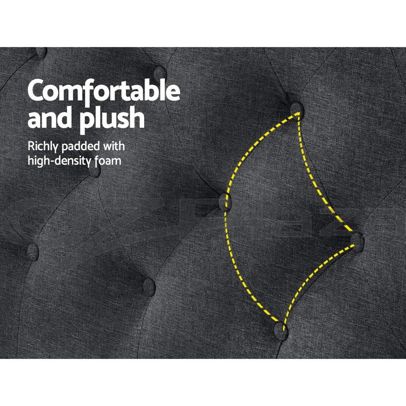 At first sight, you will be impressed how lovely this stunning bedhead literally looks. Upholstered in premium faux linen fabric, our elegant Artiss Cappi Bedhead features a button-tufted design that stands for timeless chic. Inside, it is richly padded with high-density foam to lend a comfortable and plush feel when relaxing on it. A trait that you will surely appreciate when you'rest on it to read, surf or watch a movie on your device. Plus, the bedhead is designed to seamlessly blend with your modern or eclectic decor without creating any fuss. Built to be freestanding with anti-scratch feet, our sturdy and elegant Artiss Cappi Bedhead is definitely an outstanding addition to your bed.
