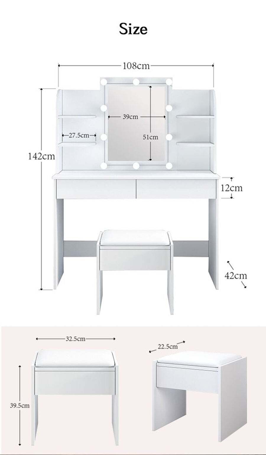 Package | 1 x dressing table 1 x dressing stool 1 x use manual 1 box accessories 1 box light bulbs |